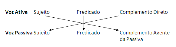 - O complemento direto da voz ativa passa para sujeito da voz passiva.